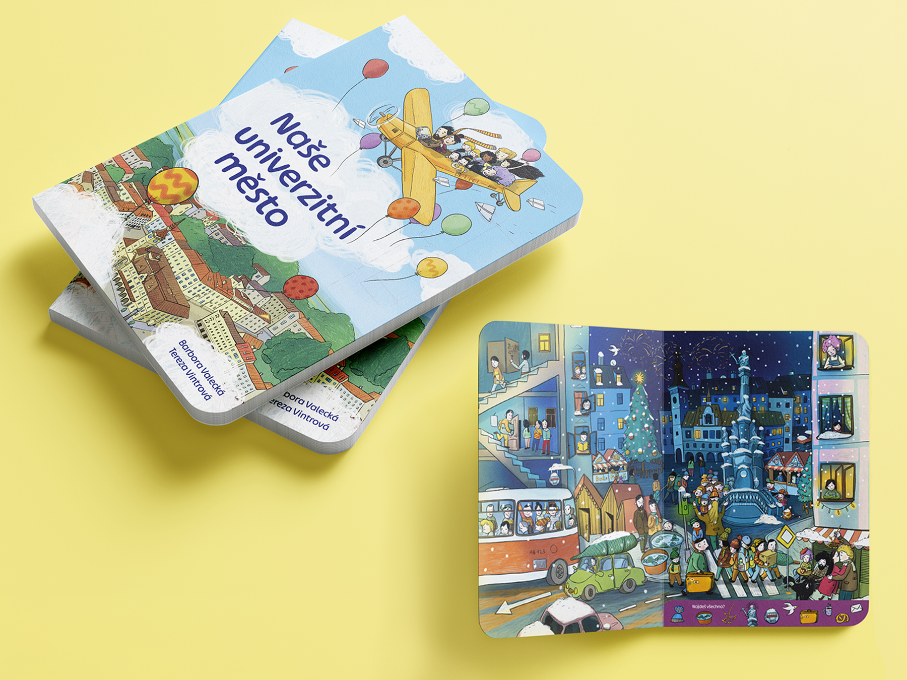 Kniha Naše univerzitní město je plná hravých čtecích obrázků a zábavných úkolů, které odhalí dětem tajemství vysokoškolského života. Každá stránka pomáhá rozvíjet dětskou fantazii, postřeh, zrakovou paměť a také rozšiřovat slovní zásobu.
